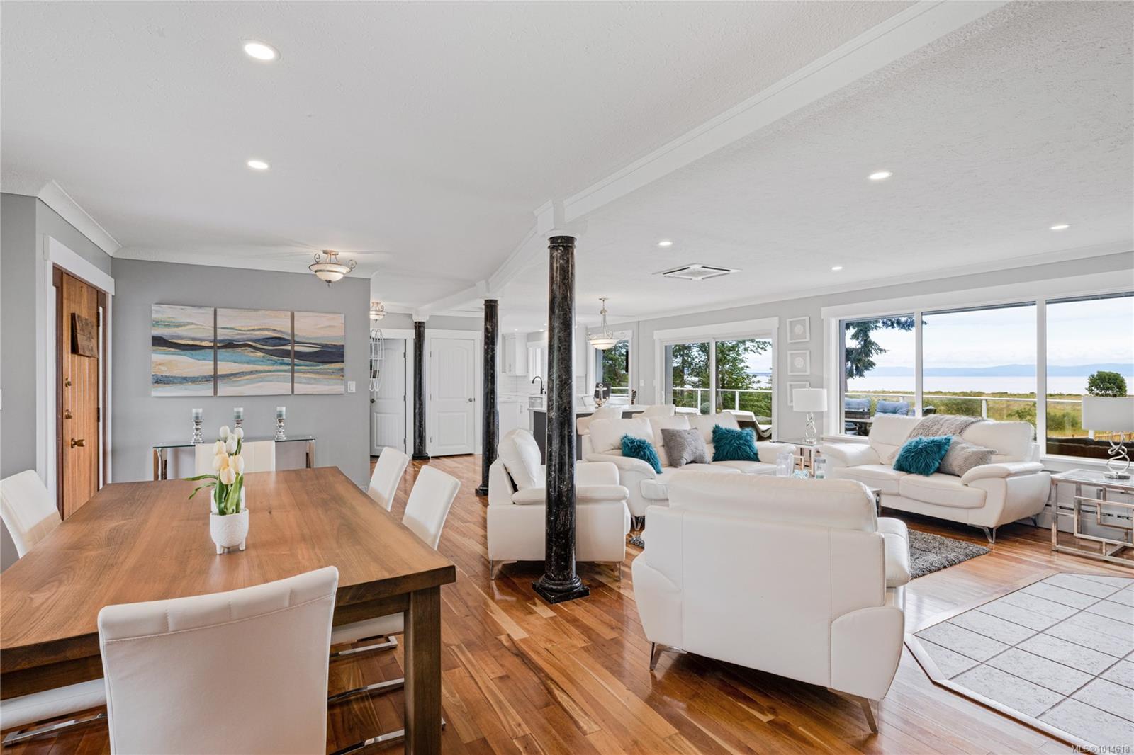 SEMI WATERFRONT – Fully renovated 3bed/2bath home with optional 1bed suite, 2nd 1bed suite in the addition. Set well back from the road on a .61-acre lot surrounded by expansive lawns, this incredible ocean view, 3700 sq. ft. home has numerous updates. A 2017 addition includes a drive-through 20’x60’ shop featuring a 14’ door and a mezzanine lounge area. A complete renovation includes an open plan layout, new windows, new heat pumps, new roof, new siding, paint trim, and a full addition. The lower-level in-law suite offers a large living area and an updated kitchen. The third self-contained suite has ocean views and high-end finishings. Relax and enjoy panoramic views in the hot tub on one of the two new decks overlooking the Salish Sea, Hornby Island, and up to Chrome Island. Meander down to the beach, kayak the waters, cast your line into some of the best fly fishing on Vancouver Island, or soak up the best sunsets around. Courtenay, Qualicum Beach, and Mount Washington are a short drive away. Island living at its finest!