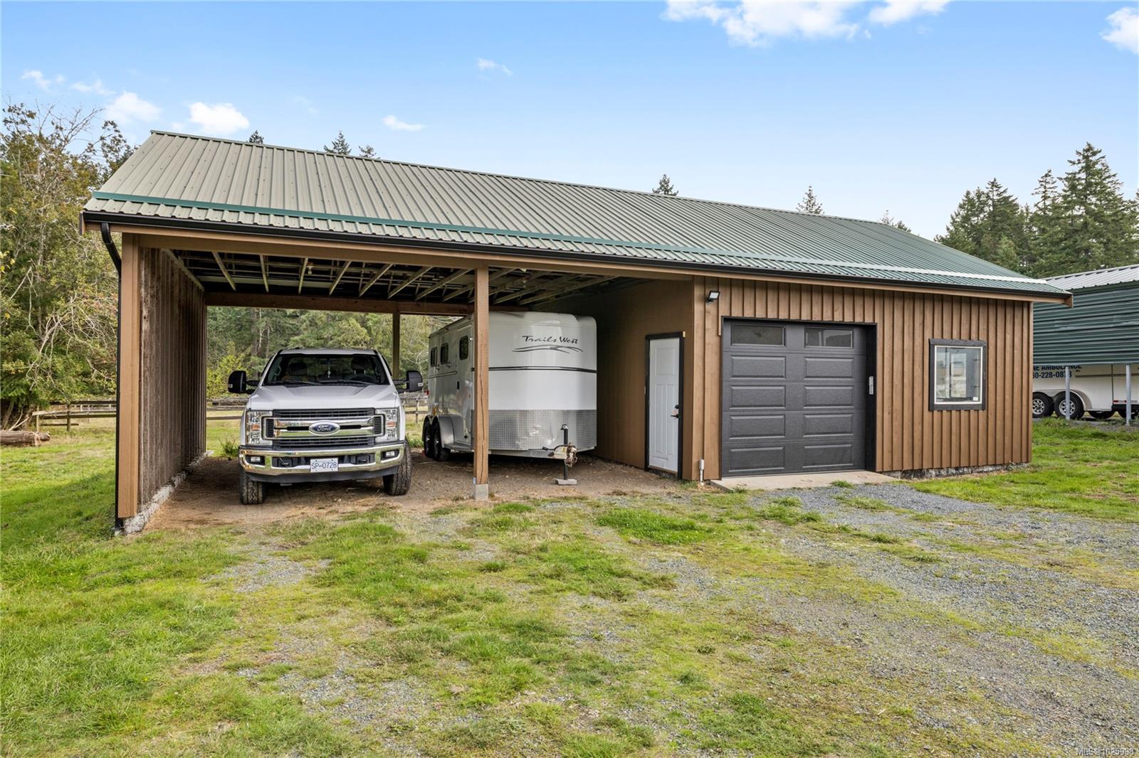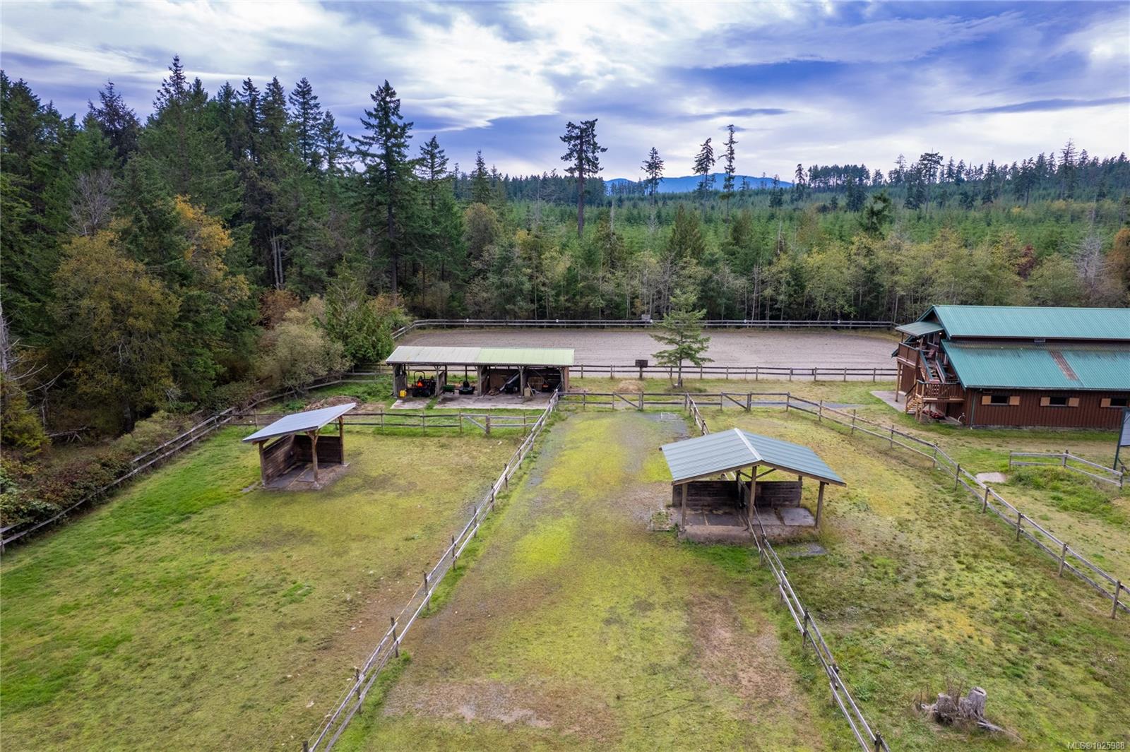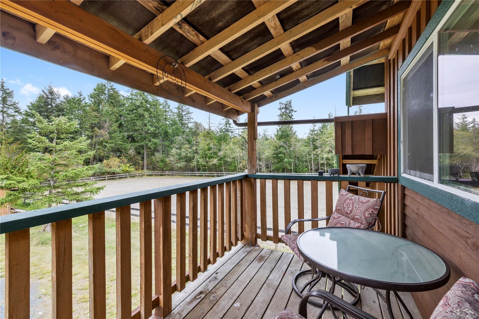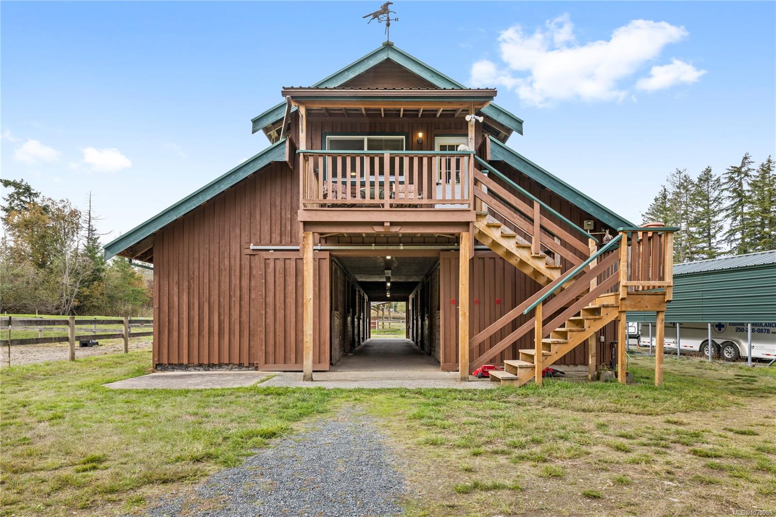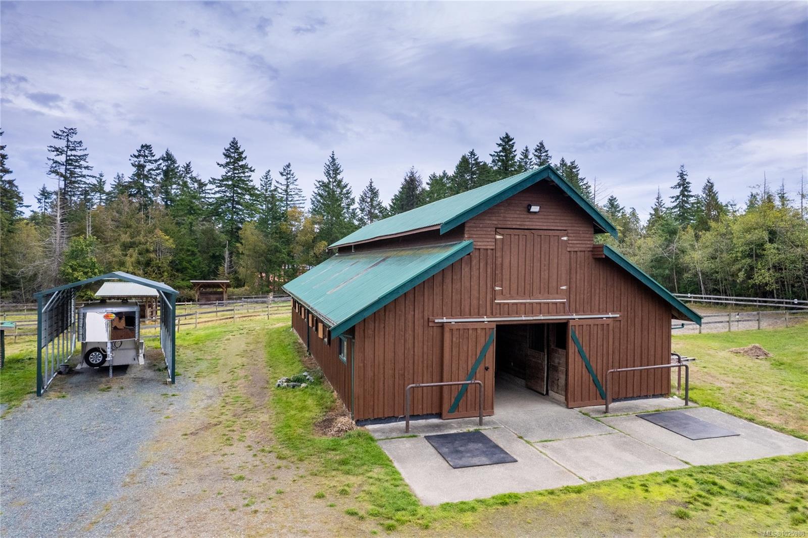 5-acre equestrian facility, with 2 homes, in the highly desirable Rocking Horse Loop neighbourhood in Nanoose Bay, ready for your equestrian dreams. Professionally engineered, well-ventilated barn with nine 12 x 12 rubber-matted stalls, heated wash bay with hot and cold water, heated office/tack room, and classroom/fitness room with kitchenette and full bathroom, plus a large, dry hay loft. 90 ft x 184 ft sand riding ring. Property backs onto miles of easily accessible trails and is a short ride to the beach, and the indoor arena around there corner on Spurs Rd. Fully fenced, with 5 extra-large paddocks and 5 shelters. Lots of treed areas for privacy and shade for horses. House One is a bright, fully updated, cozy two-bed, two-bath rancher with lots of warm wood features, some milled from trees off the property. Workshop with heated mechanical room and wired for 240V next to two covered bays. House Two is a beautiful, 2022 built, 5-bed, 2.5-bath two-storey home built in 2022, featuring a large open main living space with huge vaulted ceilings, propane fireplace, hot water on demand, and propane stovetop.