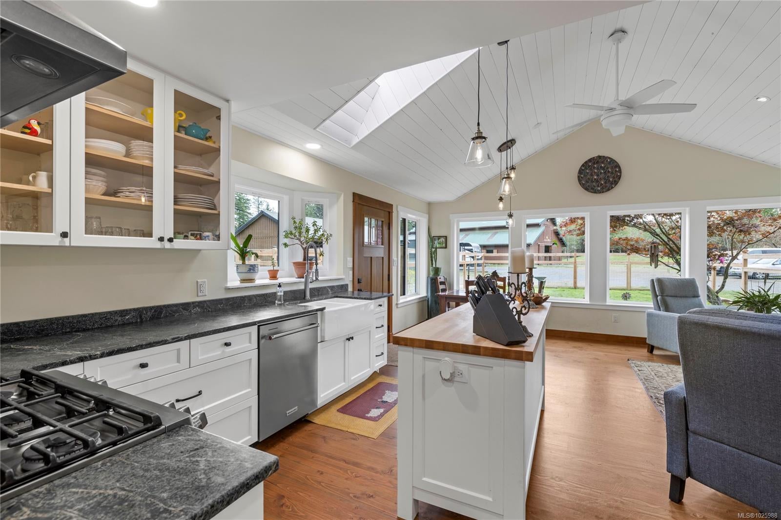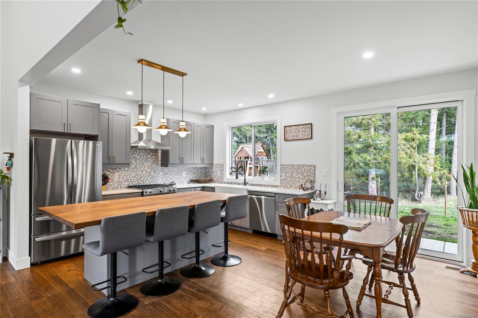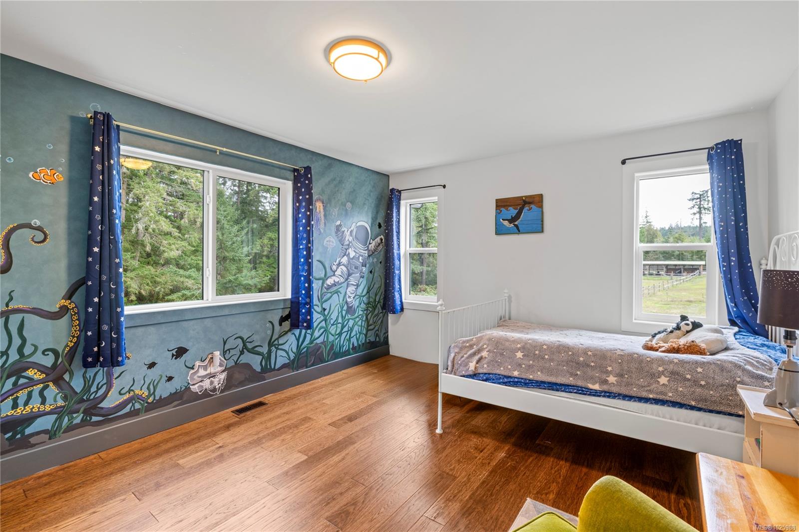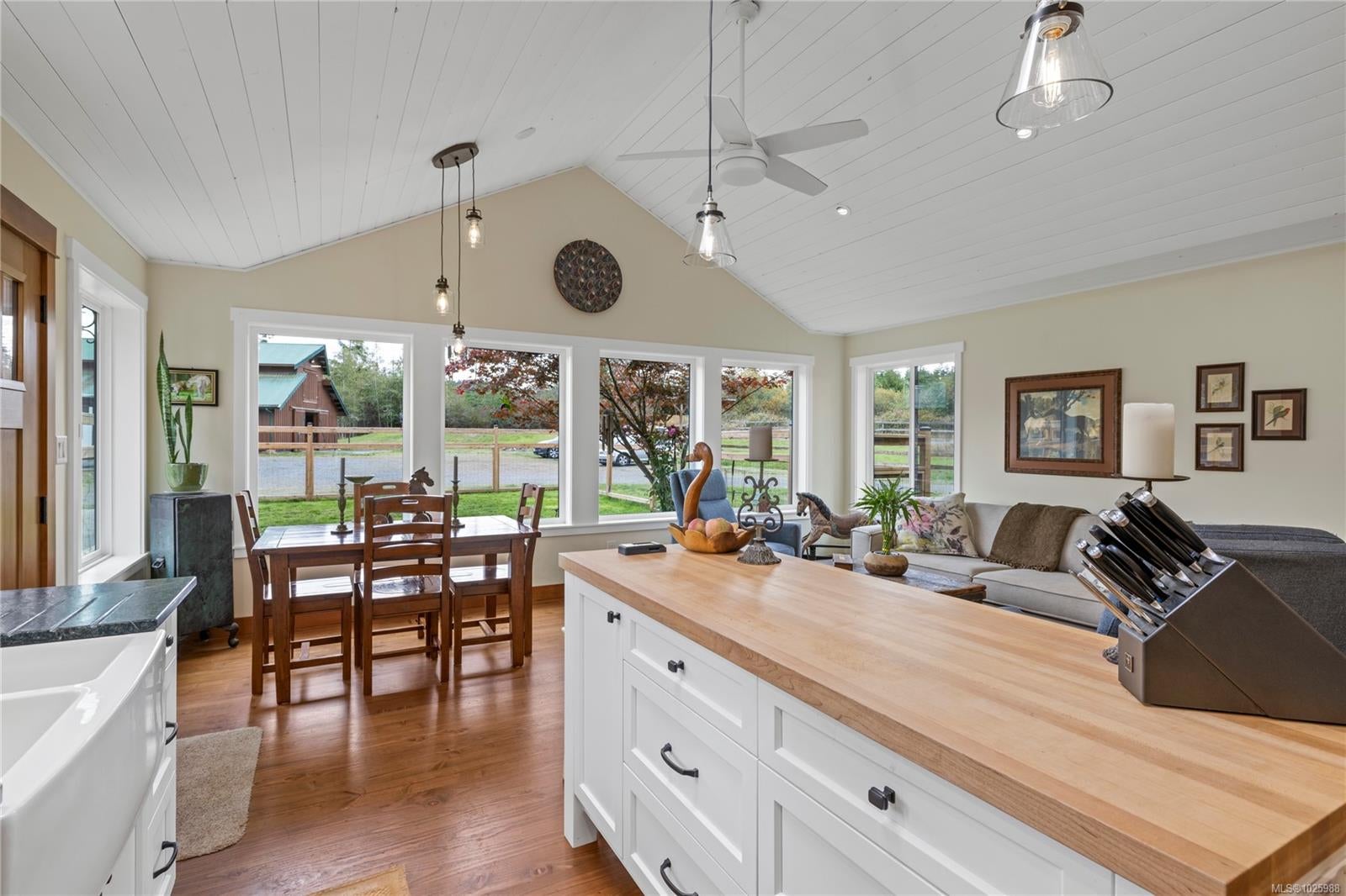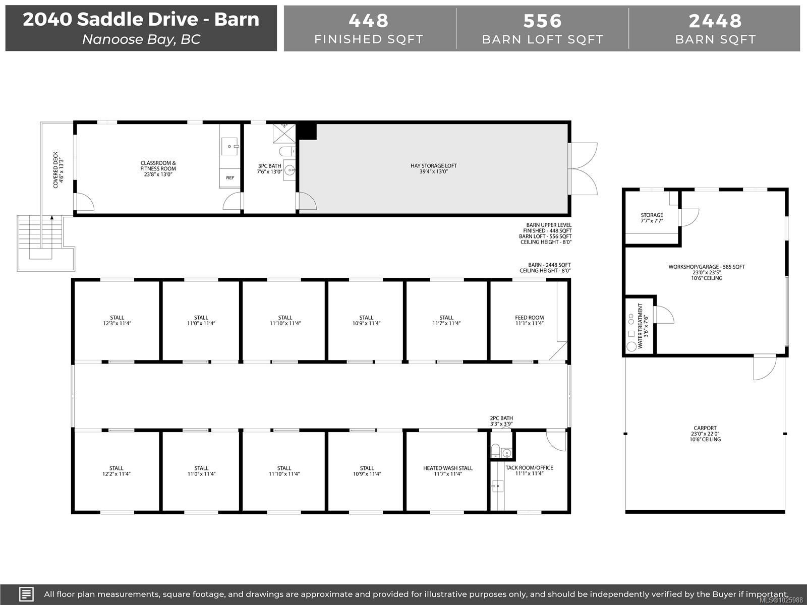 5-acre equestrian facility, with 2 homes, in the highly desirable Rocking Horse Loop neighbourhood in Nanoose Bay, ready for your equestrian dreams. Professionally engineered, well-ventilated barn with nine 12 x 12 rubber-matted stalls, heated wash bay with hot and cold water, heated office/tack room, and classroom/fitness room with kitchenette and full bathroom, plus a large, dry hay loft. 90 ft x 184 ft sand riding ring. Property backs onto miles of easily accessible trails and is a short ride to the beach, and the indoor arena around there corner on Spurs Rd. Fully fenced, with 5 extra-large paddocks and 5 shelters. Lots of treed areas for privacy and shade for horses. House One is a bright, fully updated, cozy two-bed, two-bath rancher with lots of warm wood features, some milled from trees off the property. Workshop with heated mechanical room and wired for 240V next to two covered bays. House Two is a beautiful, 2022 built, 5-bed, 2.5-bath two-storey home built in 2022, featuring a large open main living space with huge vaulted ceilings, propane fireplace, hot water on demand, and propane stovetop.